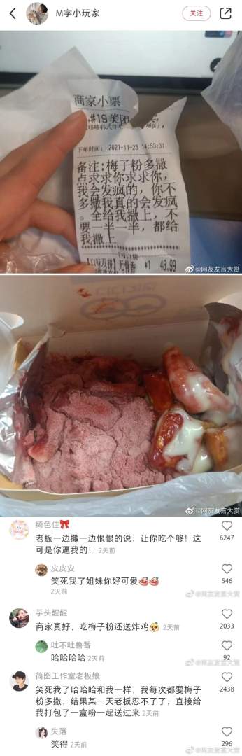 商家真好买梅子粉送炸鸡。